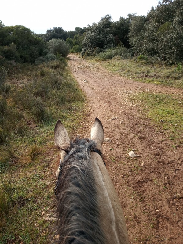 Forte de cette confiance en nous retrouvée , je suis partie cet après midi avec 3 autres cavalières faire un petit tour . On a même réussi a voir un rayon de soleil entre les gouttes d eau .