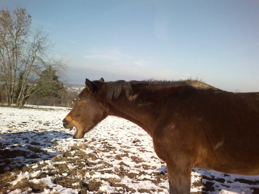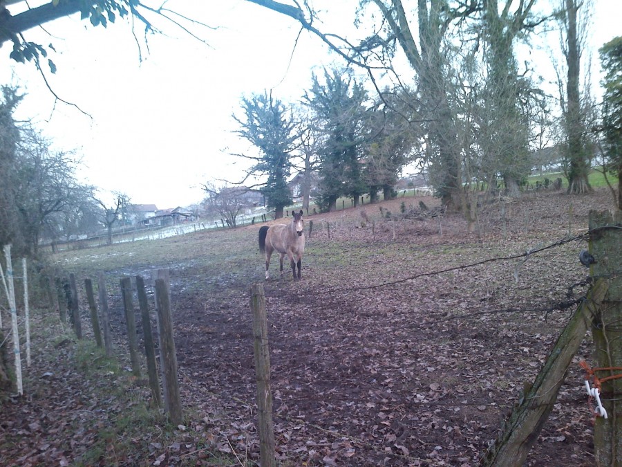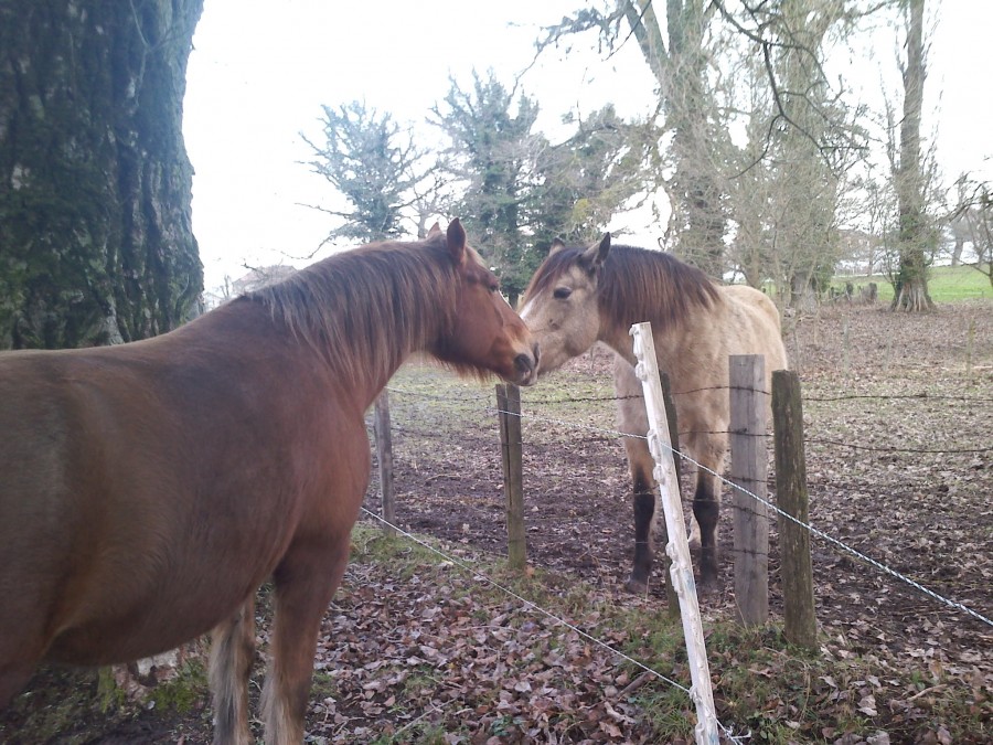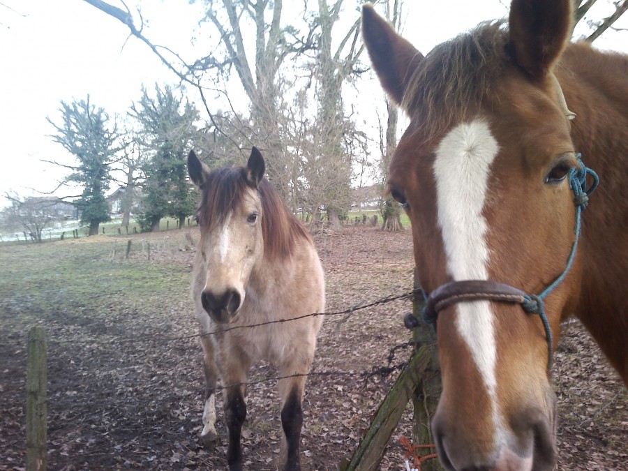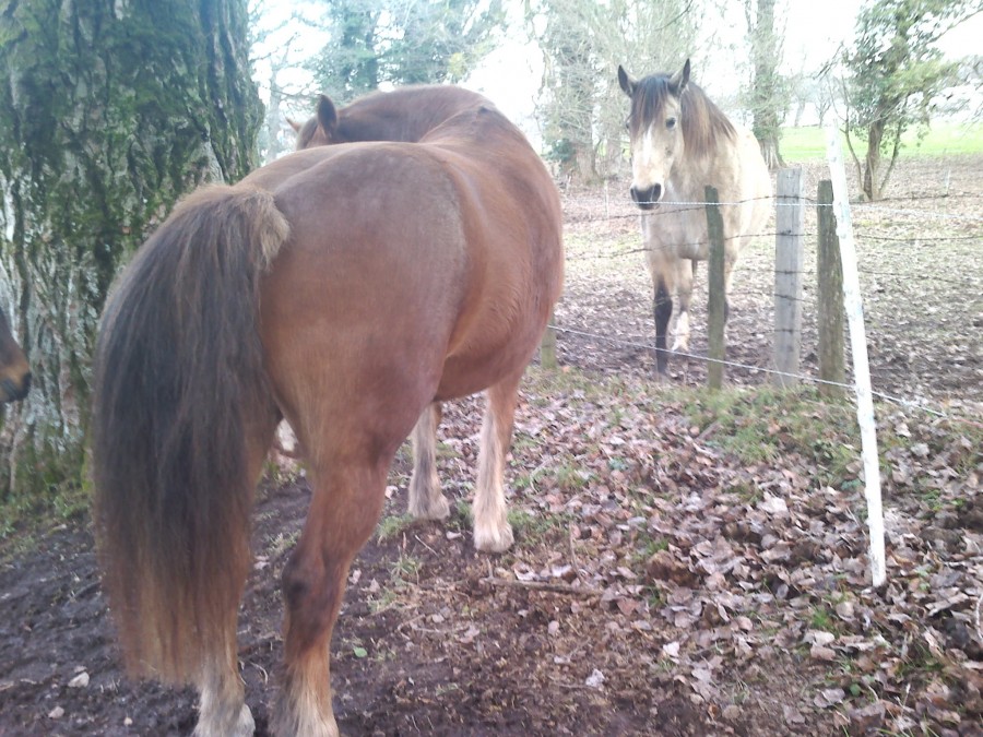 - 6 juments la journée sur un peu moins de 3 hectares dont toujours la grosse qui met une grosse pression sur Toscane qui s'isole de plus en plus quand elle est là: elle ne peut pas s'approcher du groupe si l'autre est là, ni venir prendre des caresses, ou de la nourriture. Donc l'autre grosse je l'ai remise à sa place (j'étais tellement fâchée qu'un regard noir et un pas en avant ont suffit