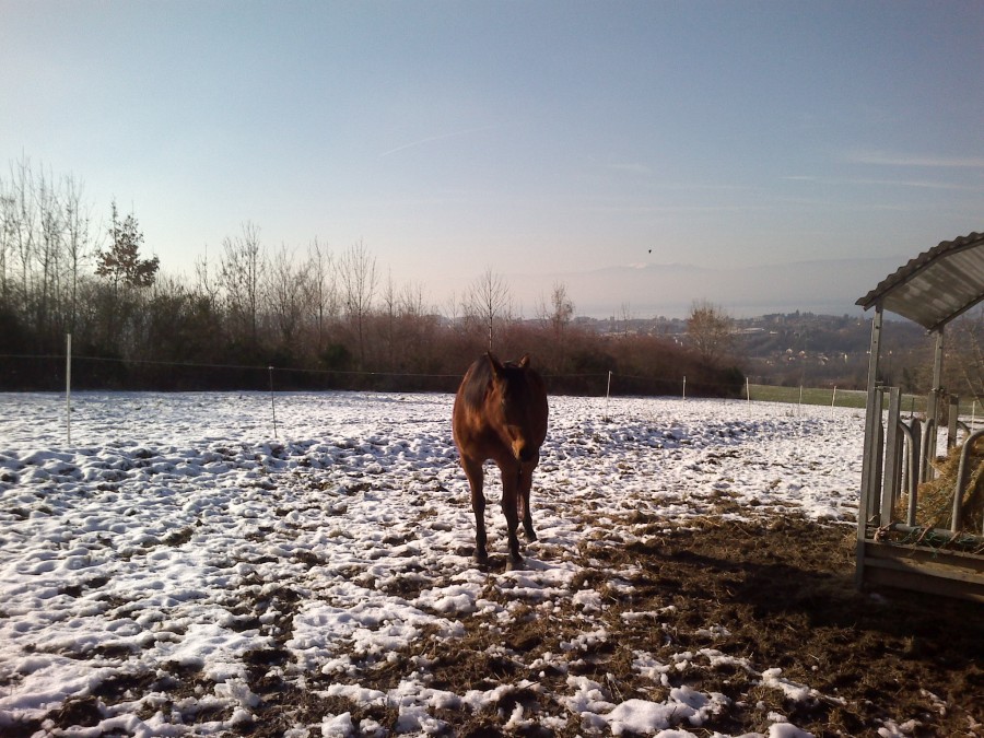 Et j'ai eu le droit à "si tu veux que ta jument ait du foin en quantité précise comme le grain ce n'est pas possible au pré, il faut la mettre au pré/box"