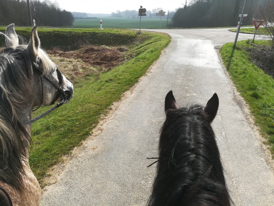 Ici, ça roule, Désert n'a rien fait depuis Jeudi dernier, je lui ai fait un petit planning d'entrainement pour Dimanche : ce soir, trotting ; mercredi, révisions de certains obstacles possibles du PTV + Maîtrise des allures ; Samedi : travail à pied.