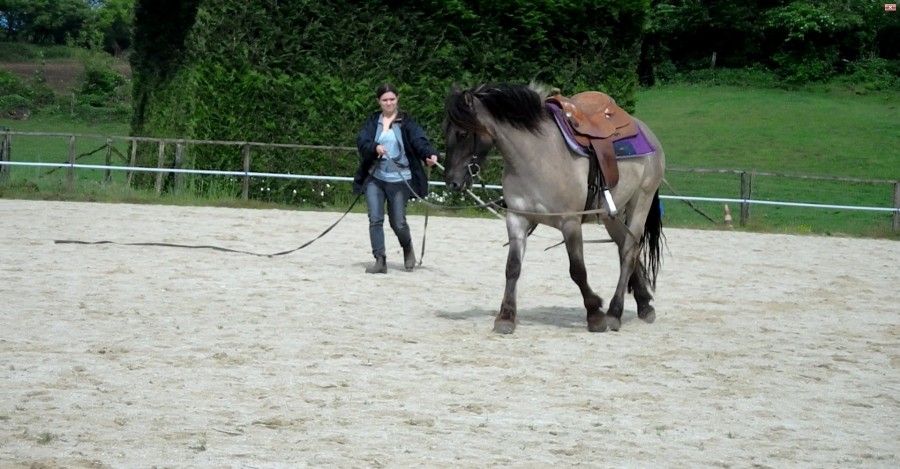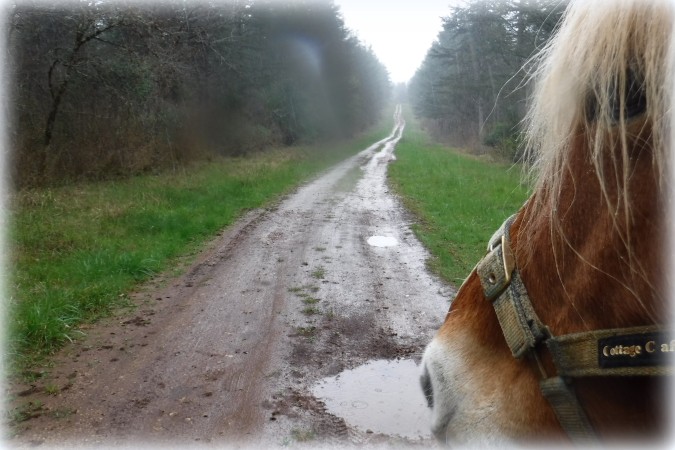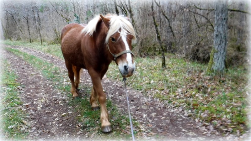 Depuis que ses soucis ont commencé, je trouve qu'il a perdu pas mal de son entrain malgré tout, une fois lancé ça va, mais alors au démarrage il peut vraiment être lent à s'en arracher les cheveux, vraiment ça m'est arrivé de me dire que j'allais juste arrêter de le monter parce qu'il allait me rendre dingue. Quand je peux pour limiter le problème, on fait la détente dans les champs, ça le motive parce qu'il y a de l'herbe, et c'est de la ligne droite donc plus facile.