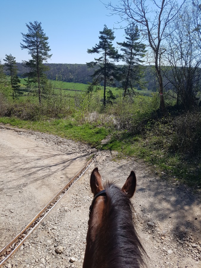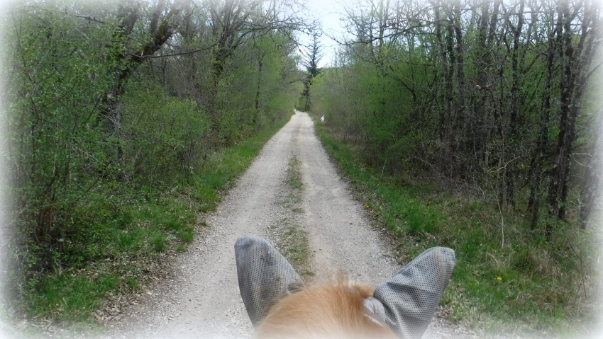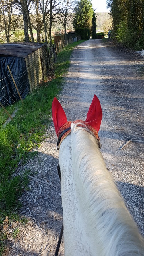 On a fait une sortie à pied car je suis interdite de monte sur l'ordre de mon osteo qui a tenté de me remettre d'aplomb hier.