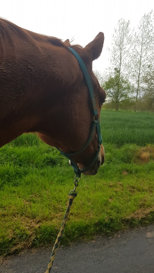 En rentrant des cours j'ai fait une balade avec Potter à pied... Vu qu'il pleut, les loulous sont tous trempés alors pas envie de brosser la boue encore mouillée et de mettre la selle par-dessus. Puis des balades à pied c'est pas plus mal.