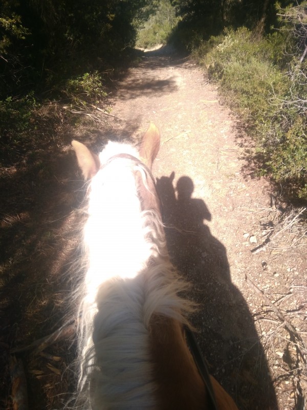 Mais curieusement, les sols ne sont pas si glissants que ça. On a pu bien trotter et galoper. Je ne lui avais pas mis ses hipposandales, car je voulais bien nettoyer la sole de ses antérieurs. C'est la 1ère fois qu'on sortait pieds nus , sans godasses, depuis que je l'ai fais déferrer début Avril.