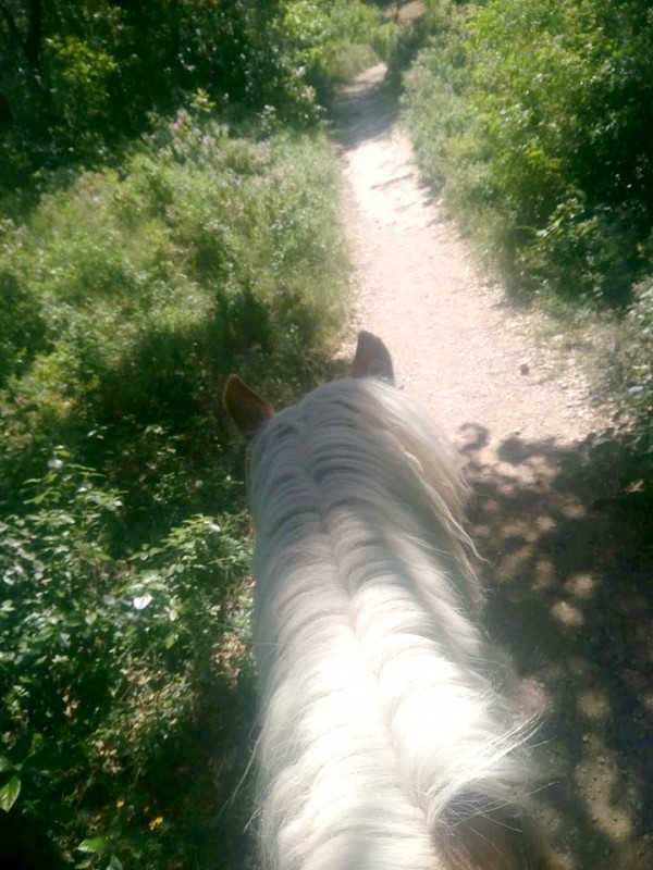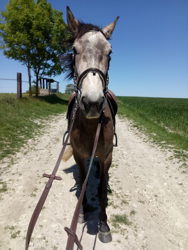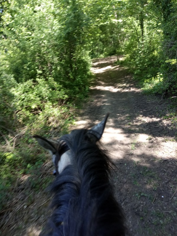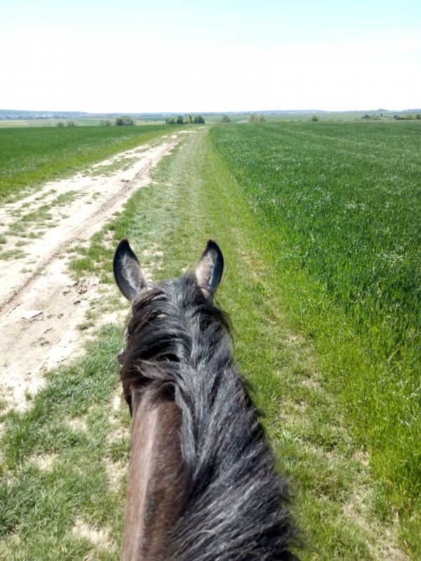 Ensuite on continue la balade vers une zone où je ne vais pas en général, y'a pas mal de montée, je lui propose un petit galop mais il refuse : je suis clairement trop tendue, donc il m'ignore. Merci loulou.