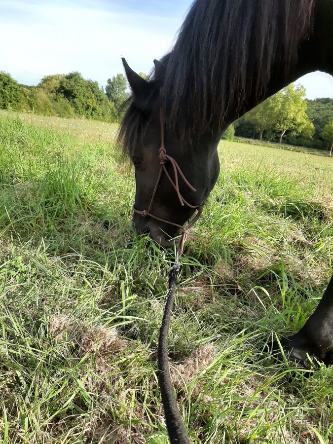 J'envoie donc un message à mon ancien maréchal, qui certes traitait mon cheval de boulet mais je n'ai jamais eu vent d'une seule attaque : il me dit qu'il faut y aller très doucement, gentiment, et surtout, le laisser céder petit à petit, et qu'ainsi, il n'aurait pas de problème.