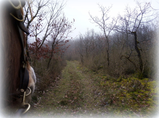 Fin il est de plus en plus à l'aise avec les autres chevaux, après je sens encore que si y'en a un derrière qui chauffe ça passe moins mais il arrive à se reconcentrer sur moi. Donc ça me fait plaisir...