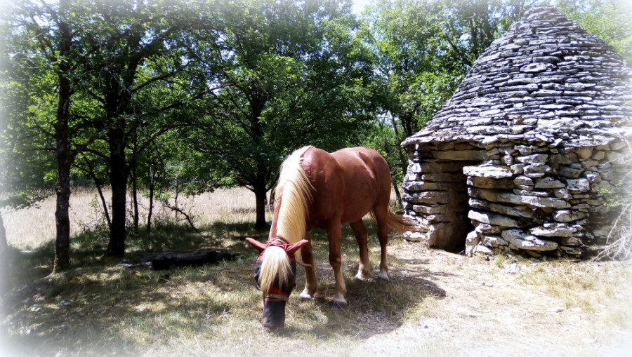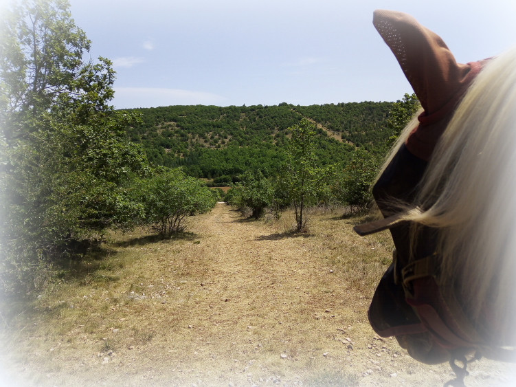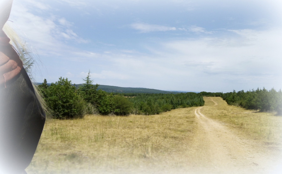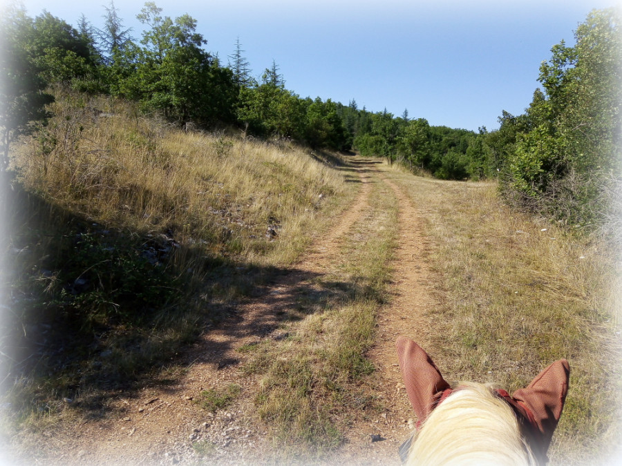 troisième étape : 17km jusqu'au Solier. Pour le coup, on a tiré au plus facile (et au plus court) jusqu'au gîte suivant pour compenser la grosse étape précédente (nos chevaux sont plus habitués à faire du 25-27km que du 30 et plus). Les chemins étaient très sympa, malgré les 2 km sur un chemin de crête en caillasse.