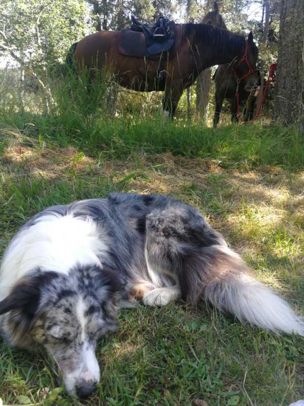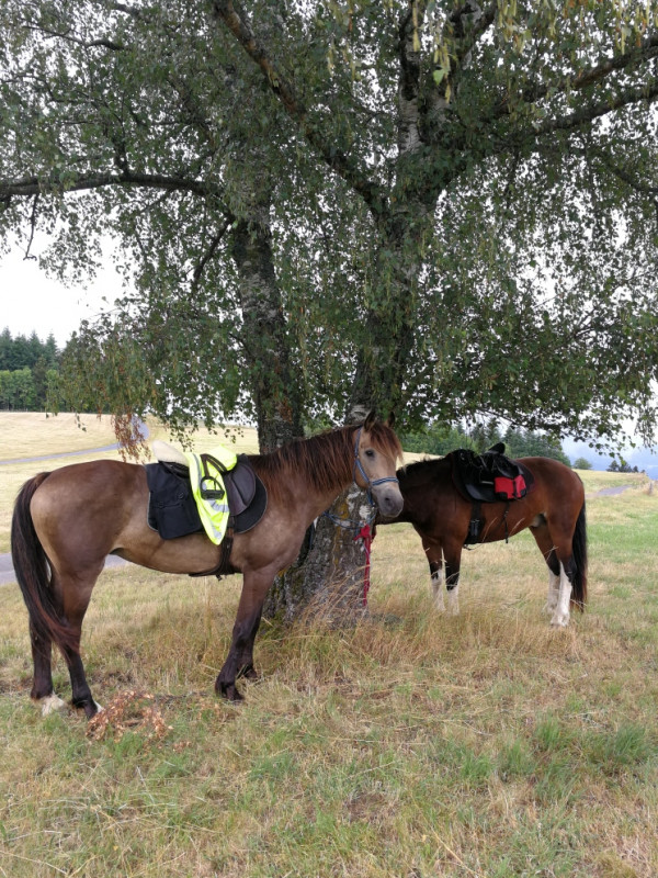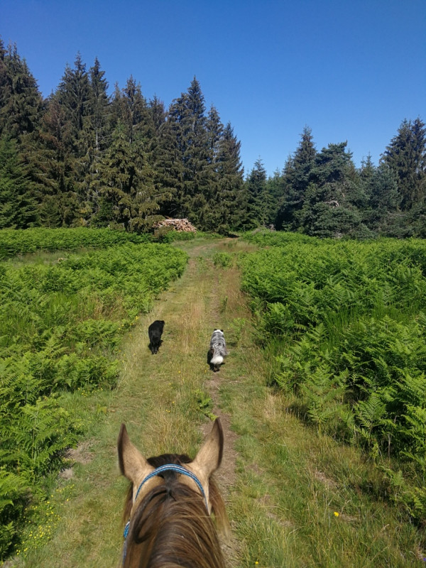 Sinon, je viens tout juste de rentrer d'une randonnée en Auvergne ! Je suis partie avec ma mère, son FM, ma jument et nos deux chiens pour faire la boucle Dore (6 étapes autour d'Ambert dans le parc régional du Livradois-Forez).