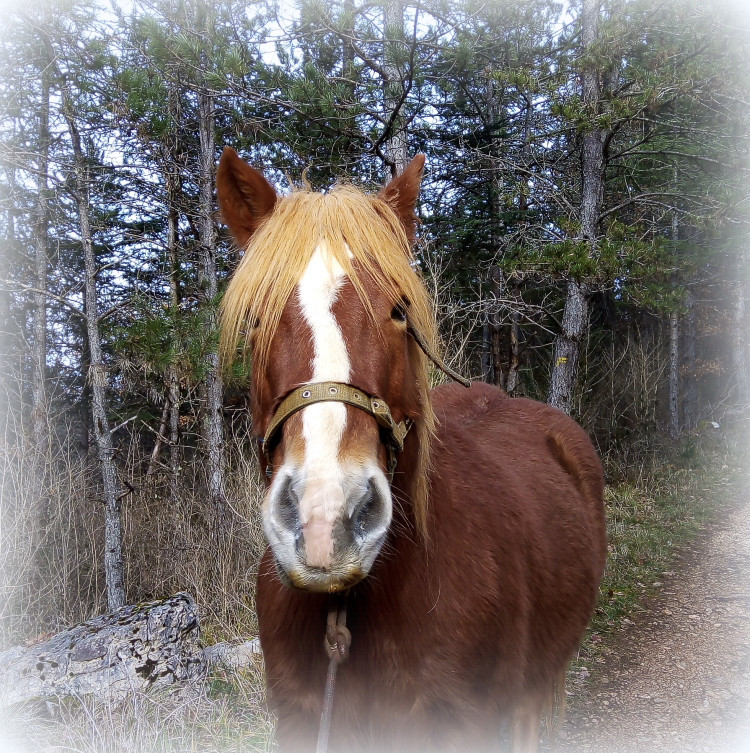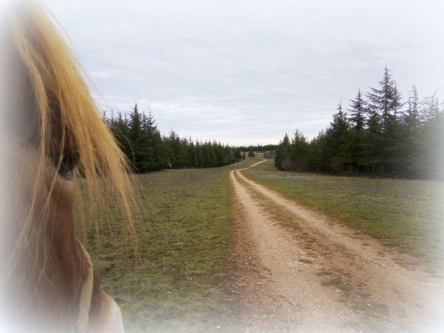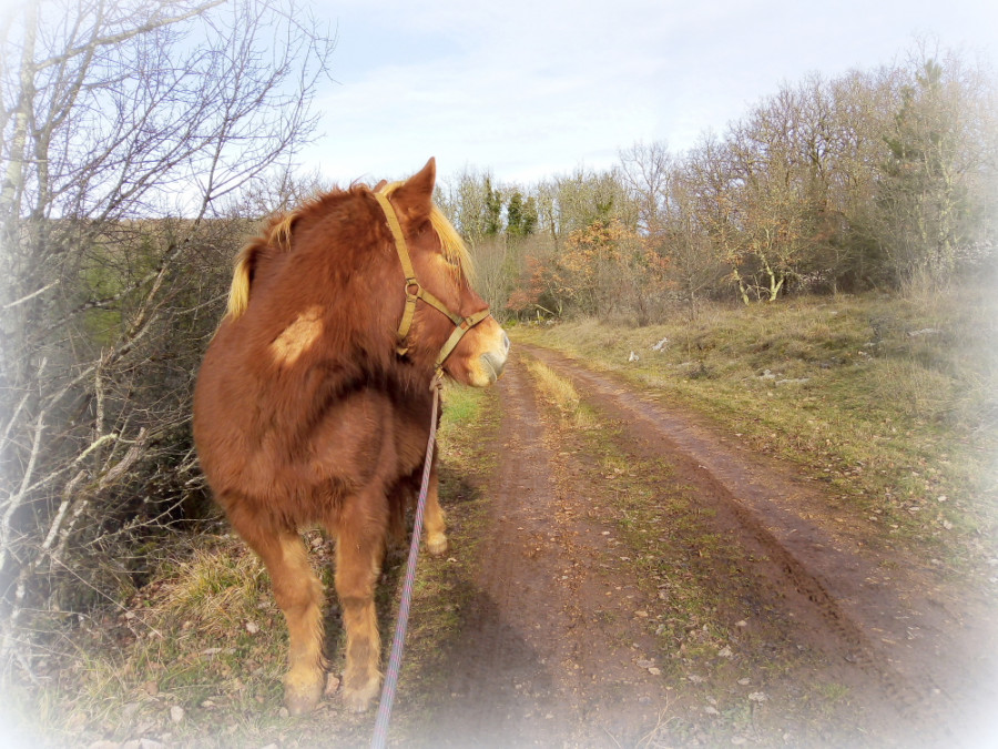 On est donc parti en longe, et fait une belle boucle de 11 km. Je trouve qu'elle souffle beaucoup, respire fort et a les naseaux bien ouverts ... mais elle marche d'un bon pas