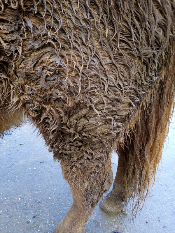 Sachant que quand elle rentrera au paddock, la première chose qu'elle fait c'est se rouler ... dans la boue