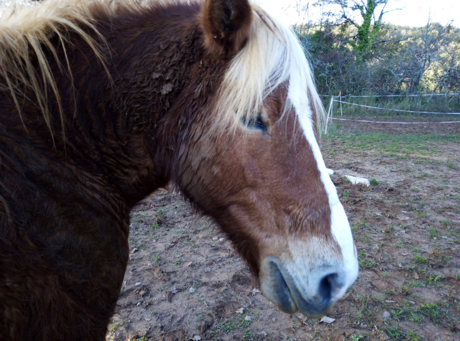 Je n'avais pas pris sa ration...j'ai regretté elle m'a suivie jusqu'à l'entrée du pré, pensant avoir son seau ...Je l'ai déçue, je m'en veux