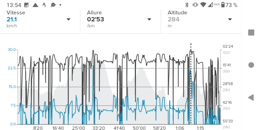 Elle a juste un peu accéléré sur la fin, car elle savait qu'on était sur le retour, la coquine. Du coup je lui ai demandé de tourner à une intersection qui nous éloignait de la maison.