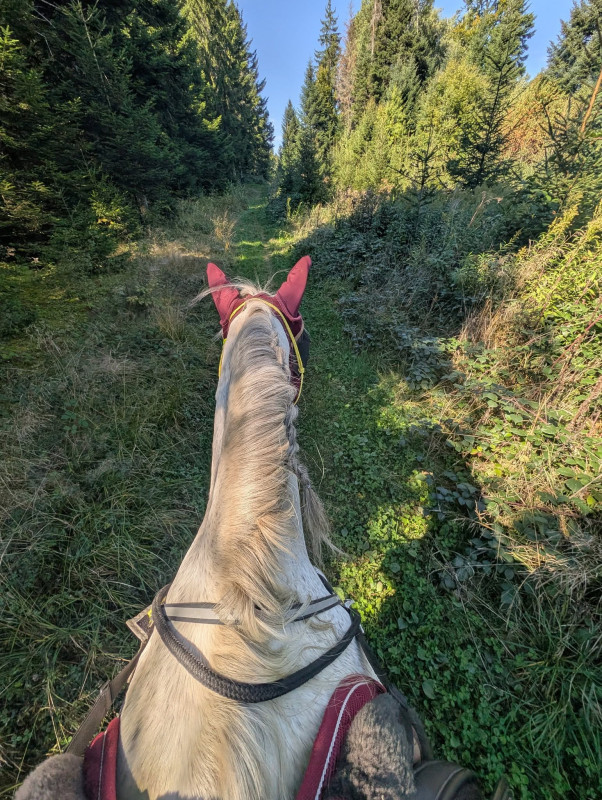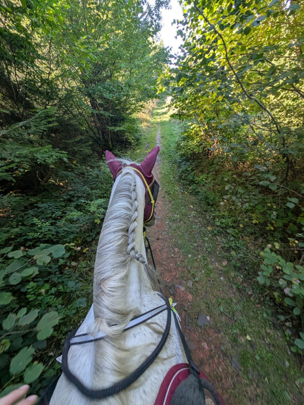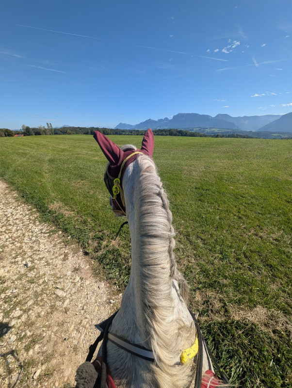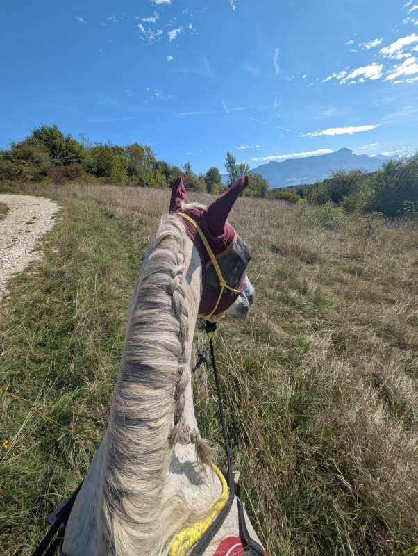 On a fait quasi que du pas, juste 2 galop car le pauvre avait chaud avec le couvre rein et le collier de chasse fluo ...