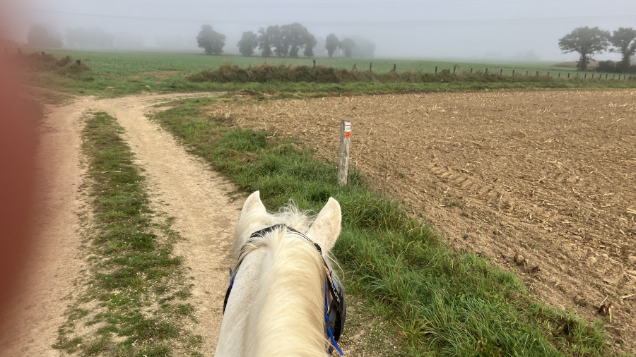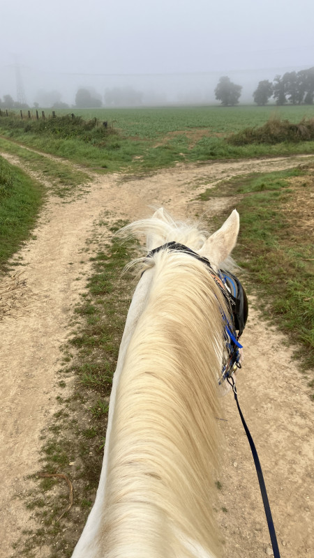 Le galop est venu assez difficilement je dois avouer, premier galop en août dans une montée très raide derrière ma monitrice, ma jument avait donné un coup de cul