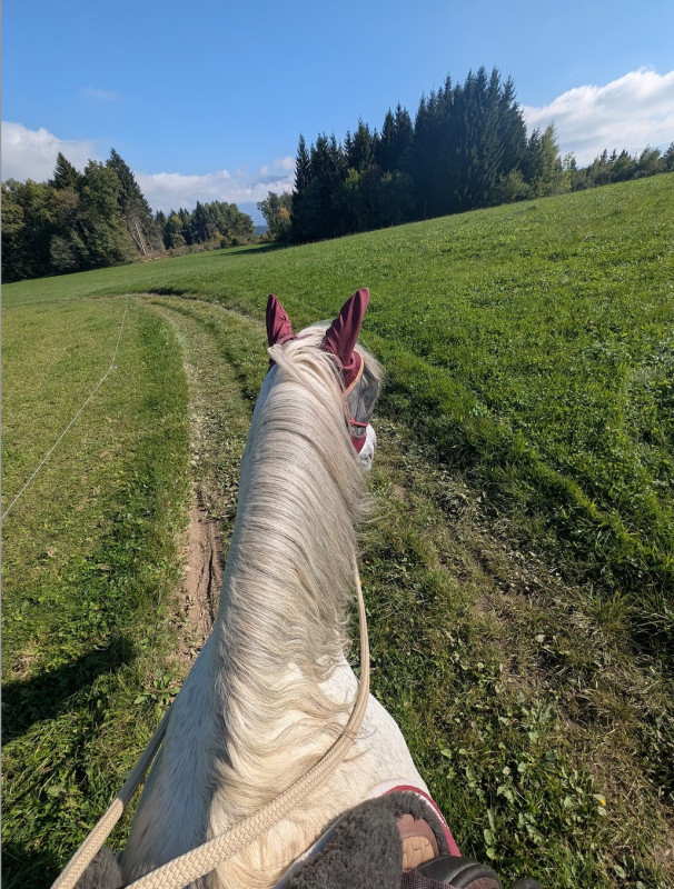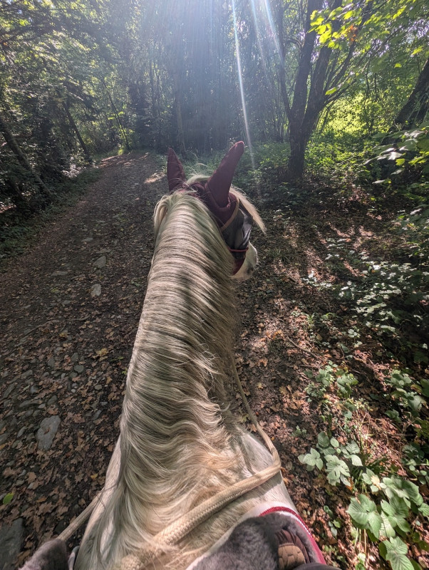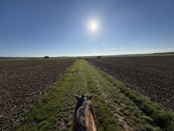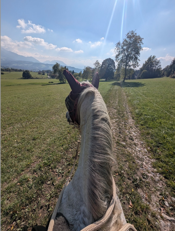 Bon, mitigée par rapport à hier. Du mal à démarrer et de nouveau cette sensibilité qui revient un poil ! Et le poilu avait un sacré caractère aujourd’hui : entre les « je broute » et les « tentatives de demi-tours », j’ai été servie ! Mais il reste de super bonne composition, même si je l’ai trouvé un peu moins dans son assiette au départ, mais après il était lancé !