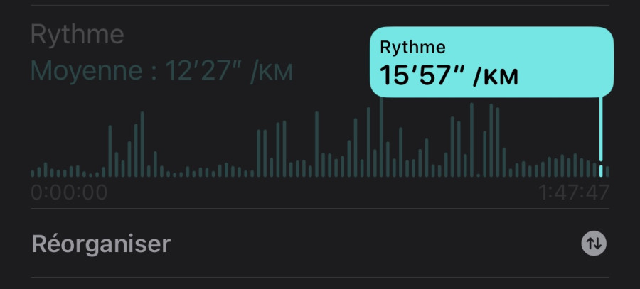 Bilan sortie de 1h36 en mouvement (pour 1h50 au total) pour 9,4km