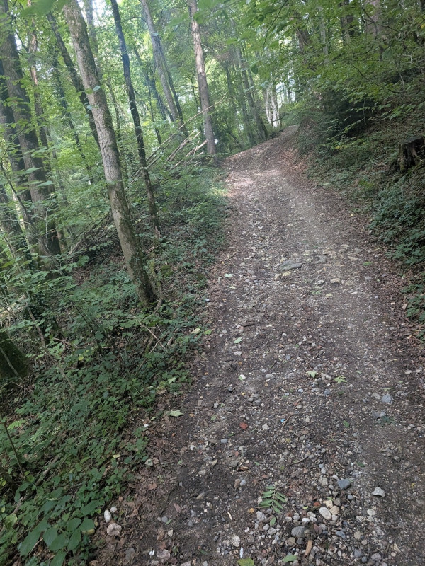 Bref on continue jusqu'à l'entrée du bois, on fait la bonne descente puis la grande montée ! (on était restés au pas jusque là)