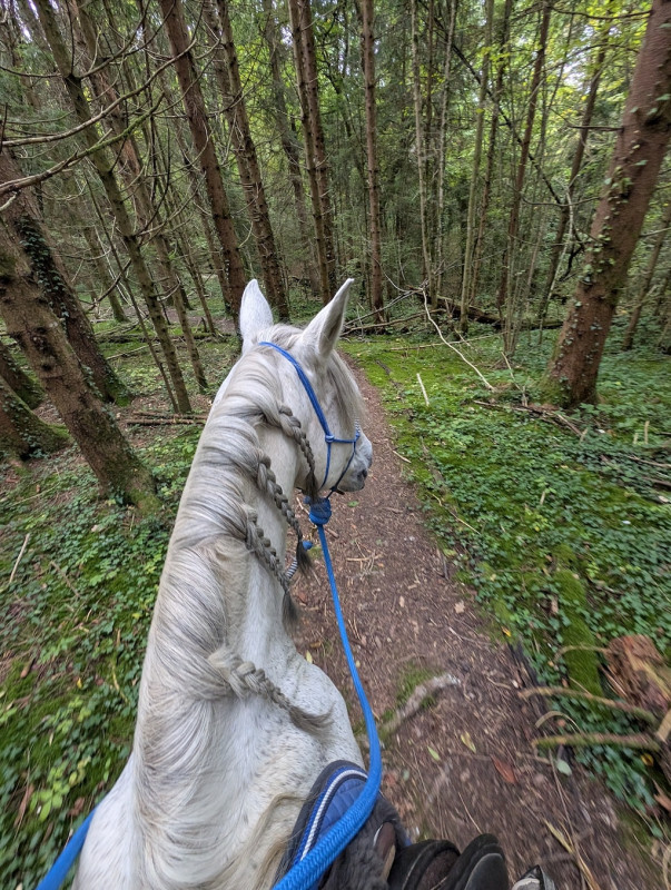 Et ensuite arrivés dans le bois on a pu trotter et galoper, j'ai même pu le faire rênes longues voire rênes posées sur l'encolure, super Zouzou