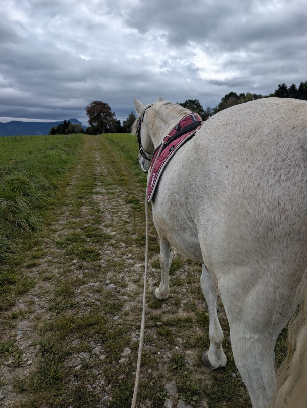 J'ai repris du travail en carrière.mais on continue des balades et trotting avec de temps en temps des sorties de 2-3 h quand mon emploi du temps le permet !