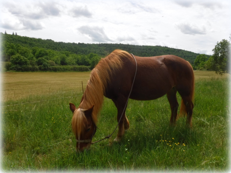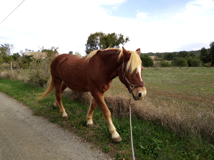 Aujourd'hui de grand soleil pour une raison inconnue les chevaux étaient au box à midi et sans foin! C'est assez récurrent ces derniers temps