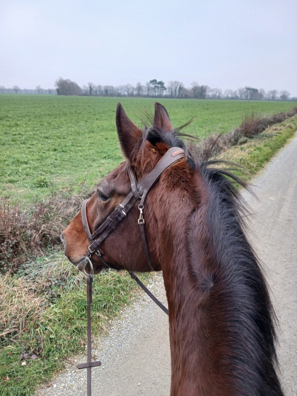 Ce week-end comme il faisait vraiment très froid je n'ai fait qu'une petite sortie de 30 minutes, seuls et ma jument était très excitée sans doute à cause du froid donc nous avons fait 25 minutes de trot