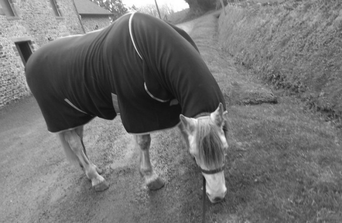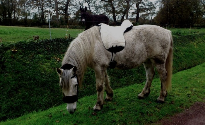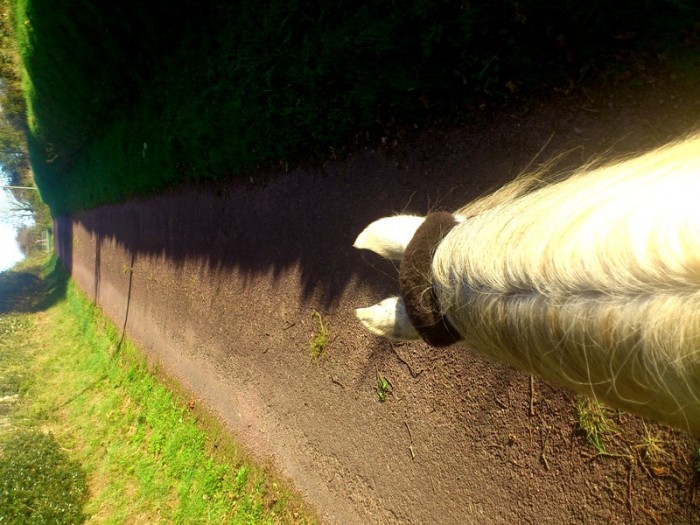 Sortie du week end pour nous dans le froid, la pluie, la grisaille... Quartz va bien. Tout le bas de son antérieur s'est cassé, car son 1er abcès de début d'année à atteind le bas du sabot. Pas de difficultés particulières en balade. Il était en forme !