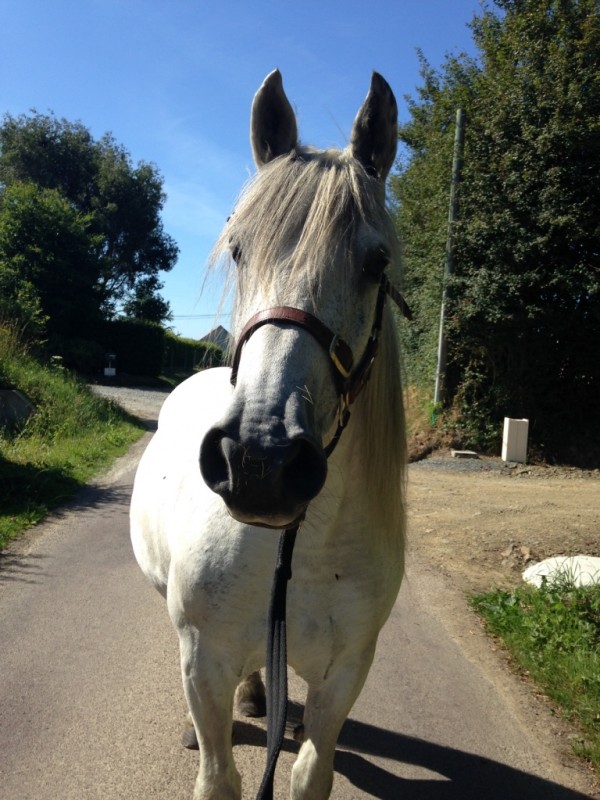 Mais le monsieur a décidé de me tenir le crachoir 5 bonnes minutes en me rappelant les règles de politesses à faire passer aux autres cavaliers. Ouii parce que vous comprenez, je suis chez moi ici, je vous laisse passer, c'est quand même à vous de dire bonjour en premier, pas à moi. Les 2 qui sont passé avant vous, ( marie jo et bertrand) ils ont rien dit, c'est pas normal... et blablabla, blablabla.. et pendant ce temps, Beau et Mien.. complètement immobile, rênes longues!!IL EST GENIAL!!!
