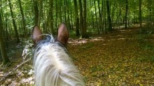 On arrive sur notre chemin en herbe préféré, on trotte, puis on galope, je me mets en équilibre pour encourager Tanzana. Et là, j'ai senti qu'il allait se passer quelque chose mais je n'ai rien pu faire. Tanza a pilé et fait un écart, moi je me suis sentie glisser et je me suis retrouvée allongée dans le champ d'à côté. Plus de peur que de mal, je me suis relevée (je rigolais nerveusement) pour rattraper Tanzana qui me regardait l'air de dire "Maman qu'est-ce que tu fabriques encore ?"