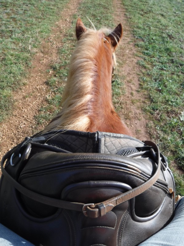 Je décide de sortir Julie avec ma selle sans arçon de chez Barefoot.