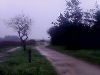 Je me suis dit que j'allais faire un tour de bois pour tester ça, et puis le bois trempé, boueux, bof... ça n'aurait pas été probant. Donc on a fait presque la balade habituelle, avec un petit chemin de traverse pour couper plus court et ne faire que 4 km au lieu de 5.