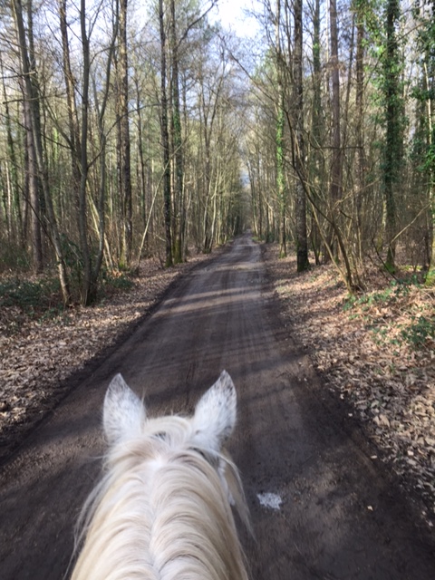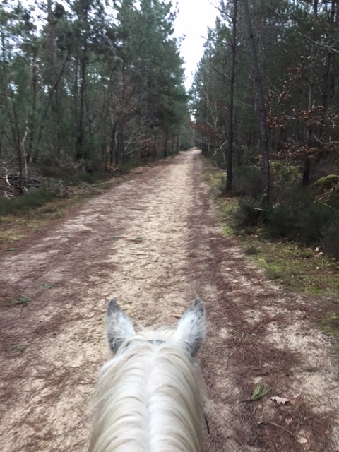 Des kilomètres de pistes en sable… Le top pour galoper ! D’ailleurs on a fait un galop dans une petite descente, les juments ont kiffé. C’est bien d’avoir une copine cavalière qui a le même pet au casque et le même niveau que moi. Et puis on connait tellement bien nos juments qu’on se permet de faire un peu les fofolles sans pourtant prendre de risques.