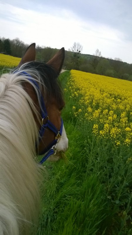 C était un chemin Qu on avait jamais vu , il était devant , quasiment pas de peur , pas de sursaut , aux 3 allures ET dans le calme . Je suis super contente de lui