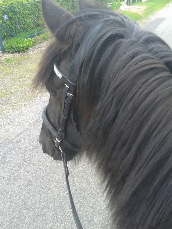 lynette magnifique endroit et superbe cheval! alors ça fait quoi de monter un frison? on a l'encolure dans les mains?