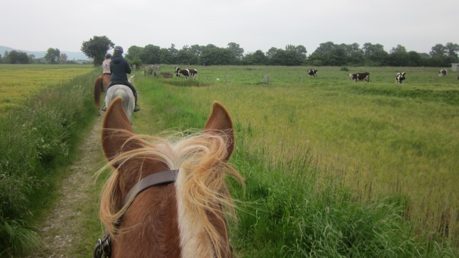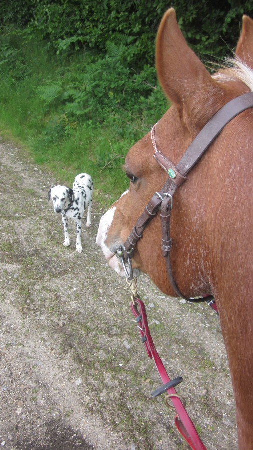 Bah moi je risquais pas l'endurance avec mon poneyscargot. Flemme d'été ou surpoids ou?? c'était lent... sur le retour un peu moins...du coup entre ça et l'orage qui menaçait, on a fait une mini sortie ( 30min), histoire de...Mais tout ça en side pull, impec! ( elle risquait pas de tirer vu sa nonchalance...)