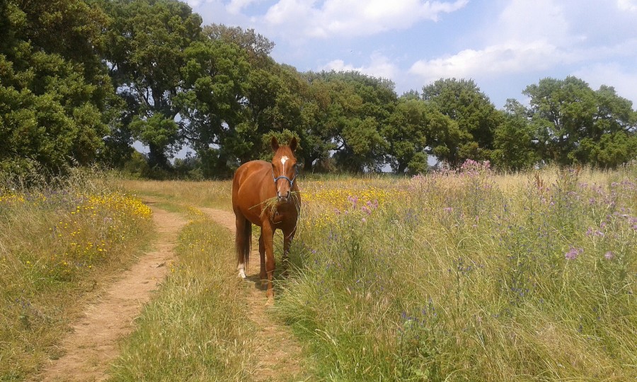 Je suis arrivée à faire une sortie avec Luna entre les averses. Mais j'ai du faire court, car son fer antérieur gauche est tordu, décollé en talon interne.