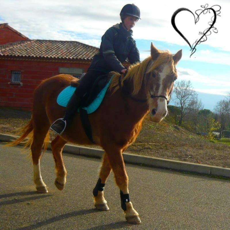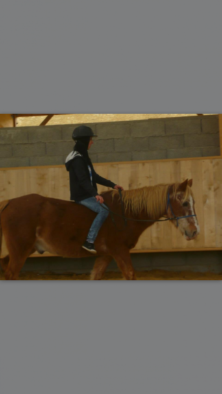 Aujourd'hui j'aperçois un peu de beau temps, je décide de faire un tour en extérieur, j'en profite pour emmener le petit cousin à son cours de poney sur le chemin, c'est donc lui qui a monté Pot' pour la première demi-heure.