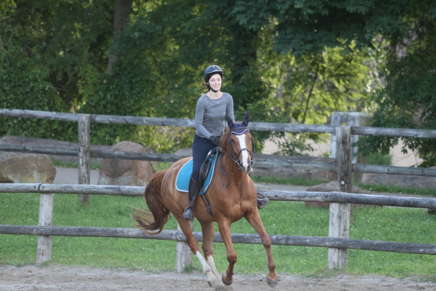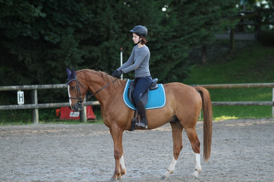 Et puis, pour un cheval qui fait que de l'extérieur, à un bon rythme, depuis 2ans, je comprends pas pourquoi elle peut longer l'autoroute, frôler une tronçonneuse, et bloquer sur une touffe d'herbe! J'ai l'impression que ce qui la ralentit c'est cette crainte du monstre possible. En ligne droite, dégagée, avec un bon sol et sur le retour, j'ai réussi à avoir un bon trotting et un bon galop, mais sinon, elle freine tout le temps ou du moins semble ne pas engager.