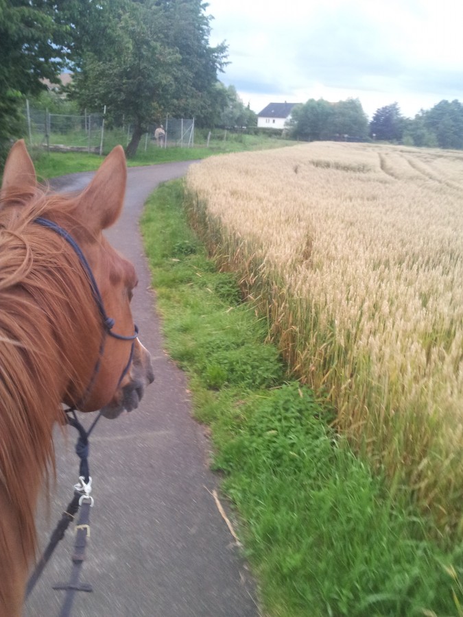 Je craignais un endroit avec une voie ferré, sachant que c’était le point ou je disposais de 3 chemins différents pour rentré : un que je connais déjà, que j'ai donc laissé, le deuxième chemin normal, et le troisième avec la fameuse voie ferré, j'ai le temps donc je vais voir comment c'est. Première étape traversé un passage à niveaux, je stresse, Amazone en a jamais vu trop peur qu'elle beugue au milieu xD mais ça passe comme sur des roulettes, puis je me retrouves à longer la voie, sauf que plus j'avance plus je m'en rapproche et toujours aucun signe du chemin, je préfère ne pas chercher le bâton pour me faire battre et fait demi tour pour prendre mon deuxième chemin. A l'arrivée ce chemin passera sur un tunnel prévu pour le train, heureusement pour moi le train se décide a passer lorsque je me trouves encore a 10 métres du tunnel, Amazone ne bronche pas , elle s'en fiche ! ^^