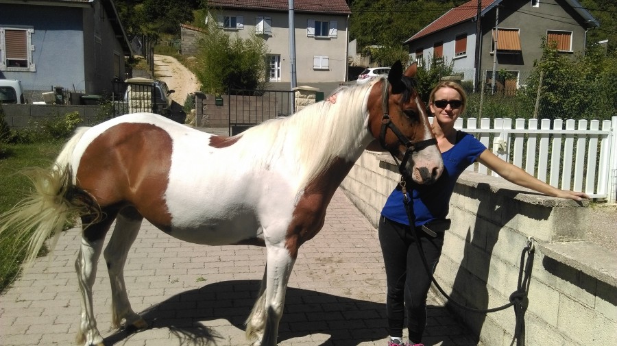 Sinon super balade, on est parties à 8h30 pour avoir le frais, et on n'a fait que de la forêt. température idéale, la rosée sur les feuilles d'arbres, les odeurs de tilleuls chauffés par le soleil... Et avec ça, une louloute motivée, qui demandait le trot! On a du coup fait du mini cross, au trot dans des chemins un peu cabossés, petites montées et descentes, virages...Sympa! Et puis on a tenté de nouveaux chemins..on s'est perdues...Mais avec une juju passe-partout, pas d'inquiétude. Elle était vraiment allante et contente.