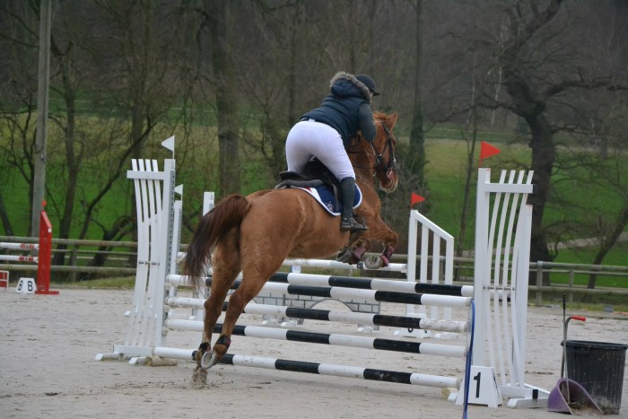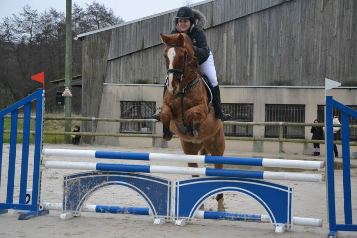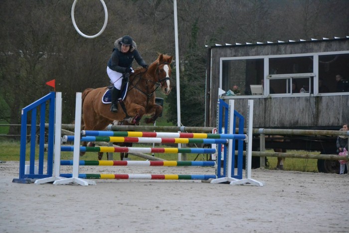 Sur le tour, poney sort pas forcément ses plus belles ailes, mais elle est super réceptive. On tourne pas mal, ca galope gentiment. On a le même but toutes les deux, sauter sans faire tomber de barres. C'est un succès ! On ressort le sans faute cette semaine !