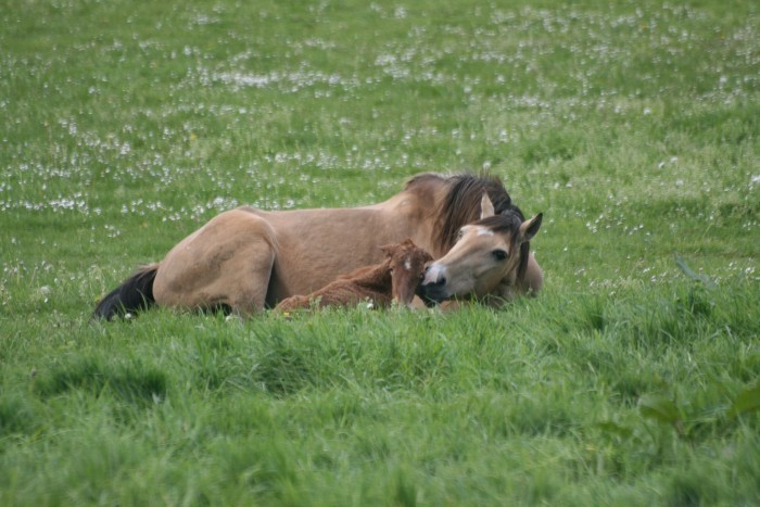 on a descendu tout la foret, et tout remonté au galop, en passant par des chemins serrés entre les arbres, des côtes très très pentues, des passages sous des branchages... et une fois en haut on a redescendu quelques côtes, les chevaux étaient limites assis dans la côte tellement c'était pentu, et on en a remonté dans le même genre. On avait que des poulains, ça leur a demandé de faire gaffe un peu à ce qu'ils faisaient, c'était chouette