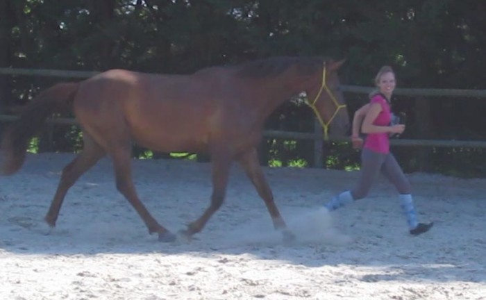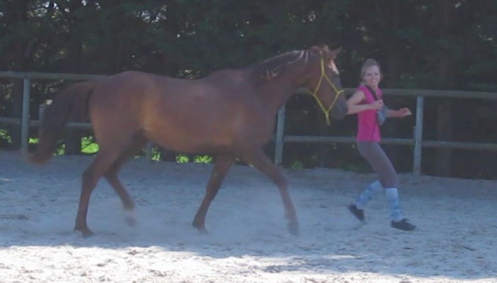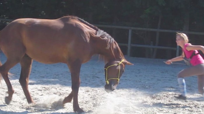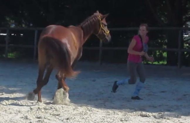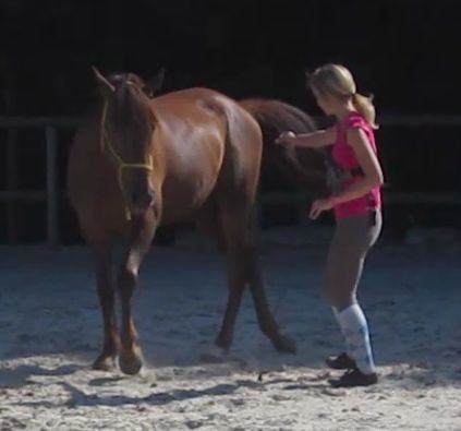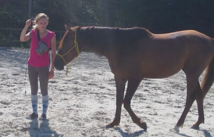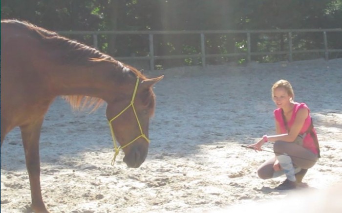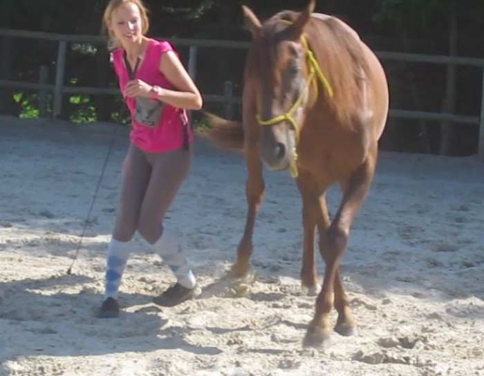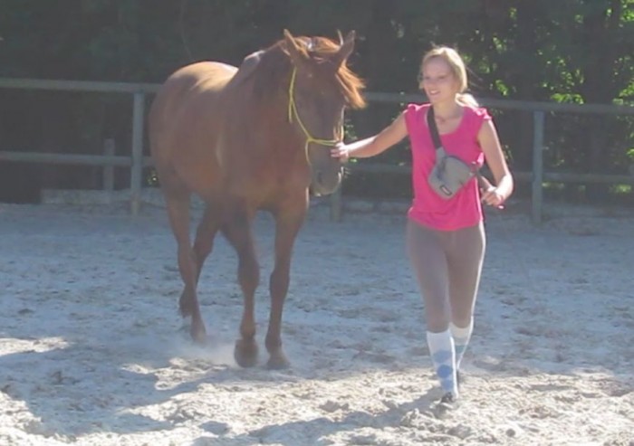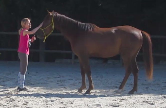 On a donc détendu nos garçons, ça se passait bien. Étant venu accompagnée, je descends de cheval pour laisser l'alezan à une autre cavalière.