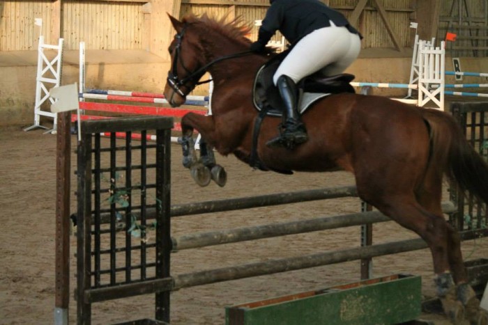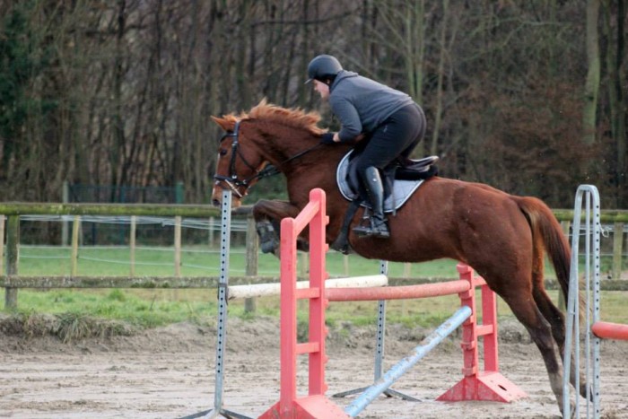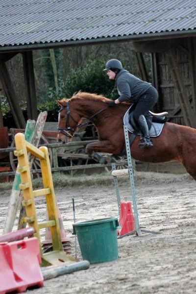 Mardi, cours particulier à l'obstacle avec David pour sauter avec Sologne, la séance s'est vraiment bien déroulée ! J'ai enchainé un petit tour de 5 obstacles avec une ligne en 4 foulées, un vertical sur sous bassement isolé et une ligne en 5 foulées avec oxer en sortie. quelques entrées de lignes qui tombent mal, je me déstabilise encore et toujours comme à chaque fois avec cette jument, mais sur l'ensemble de la séance c'était vraiment positif, ça m'a reboostée à travailler avec elle