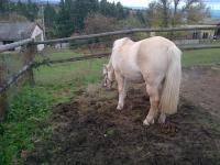 Nourriture granulers, litière paille, et foin 1x/j, couvertures retirées le matin et remise le soir si besoin, sorties paddock.