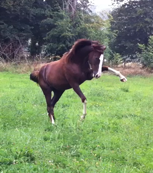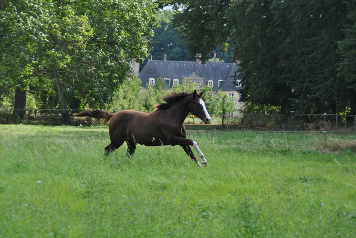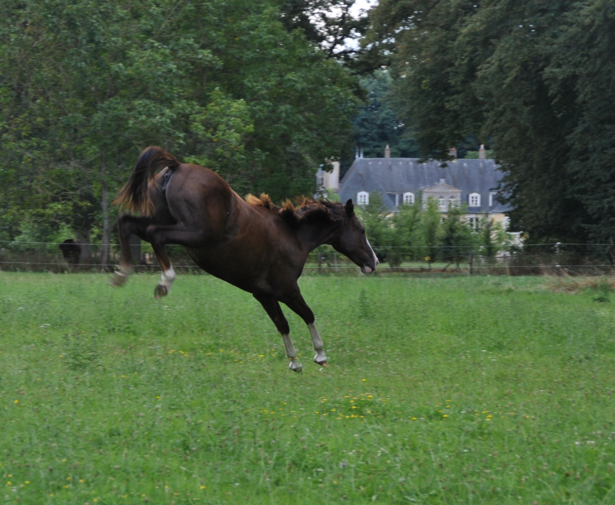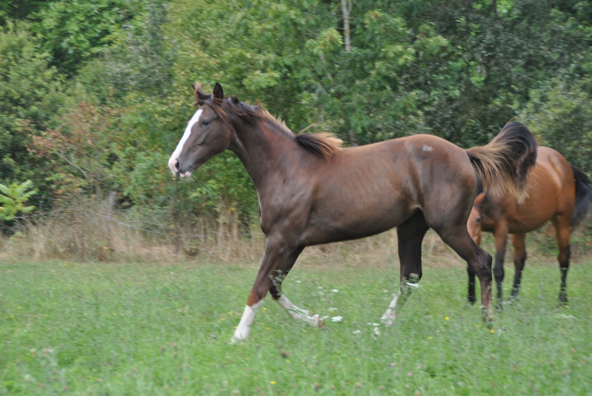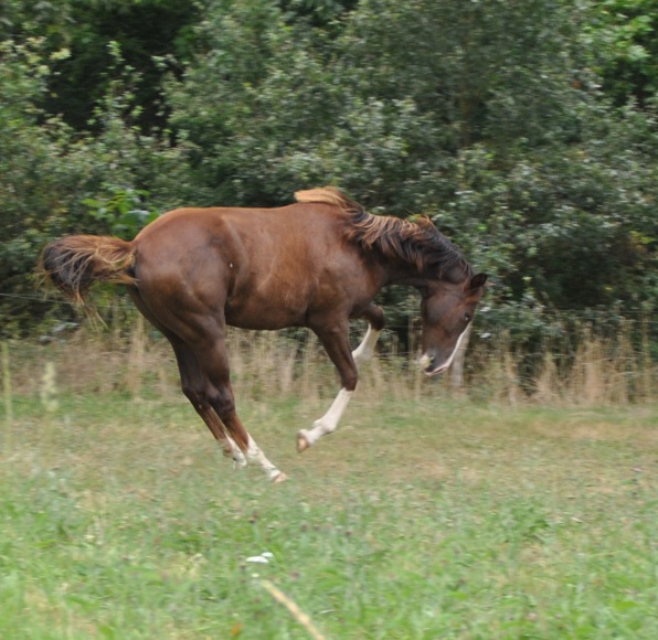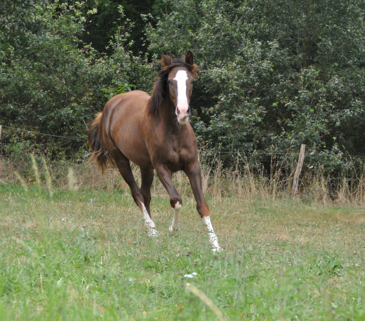 Chic alors va super bien , elle a une jolie robe alezan cuivrée et un caractère bien trempé , d'ailleurs au local foal (où elle est 3 ème ) les juges l'ont commentée " téméraire "