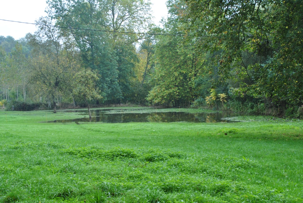 Pour commencer, le pré dans lequel je voulais mettre les loulous fin de semaine.... Même s'ils aiment bien patauger, on va attendre la décrue La rivière passe au fond du pré en contre bas (normalement). On dirai pas comme ça, mais il ya assez profond d'eau dans le pré.