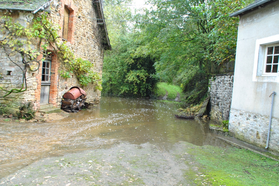La rivière passe derrière la dépendance de gauche et là elle largement remontée!