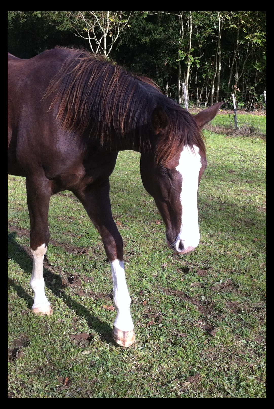 Elle a ce je ne sais quoi qui me fait craquer, cette belle robe brulée, cette liste qui lui fait son nez blanc (mon chevla ausi a le nez blanc), vraiment très très belle !