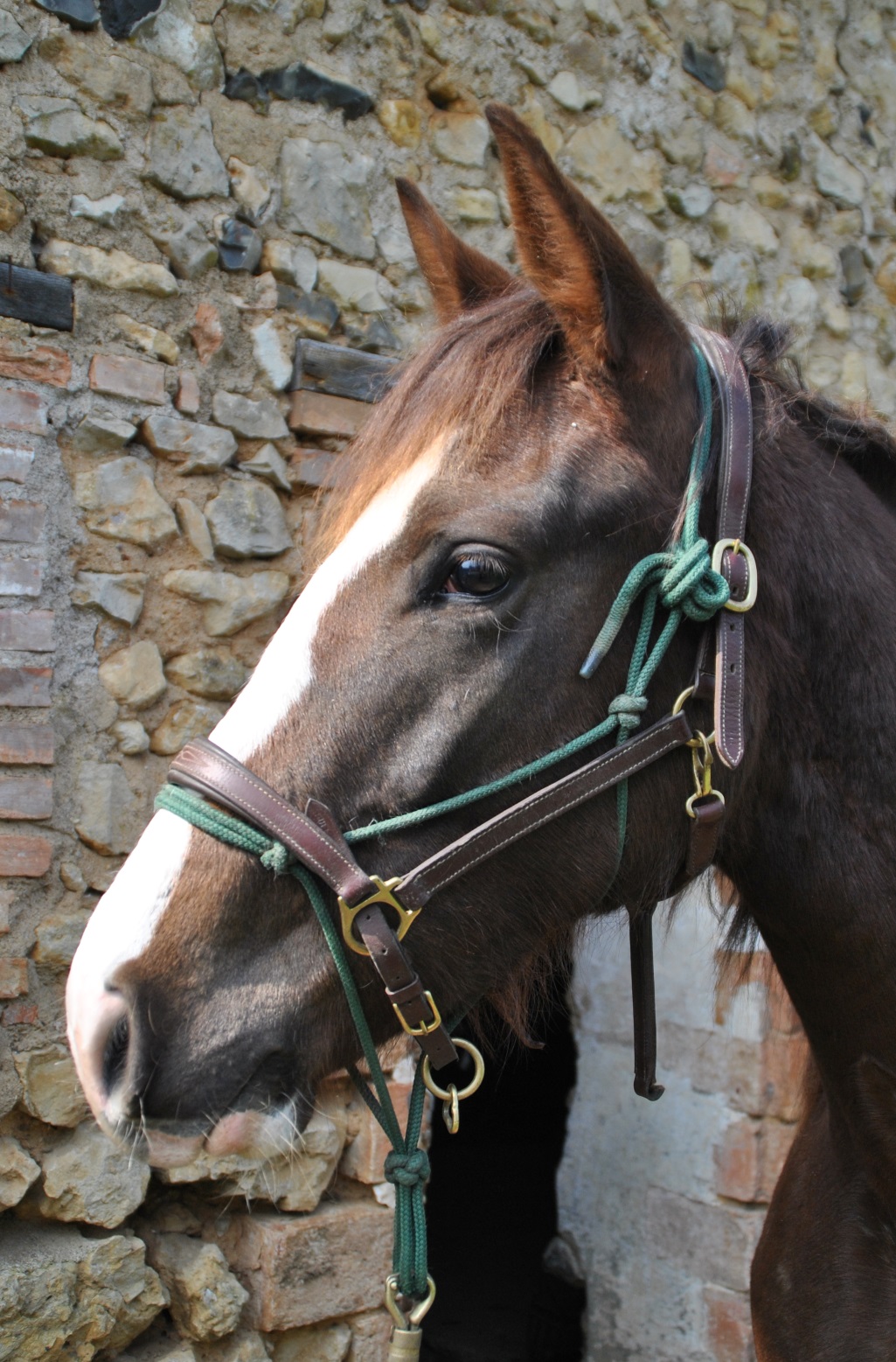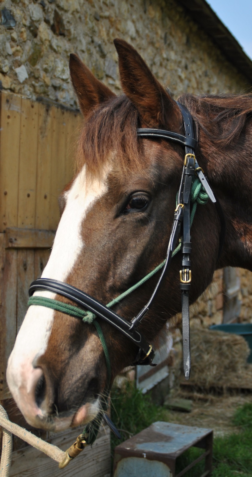 Alors voila 2 photos, pour vous montrer ce que ca donne. Il faut aussi prendre en compte que le filet noir est neuf et le licol marron tout terne car besoin d'un bon coup de graisse
